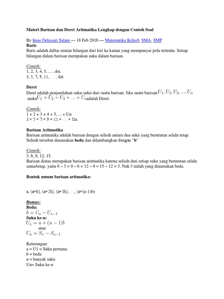 Rumus Barisan Deret Aritmatika Dan Contoh Soal Lengkap