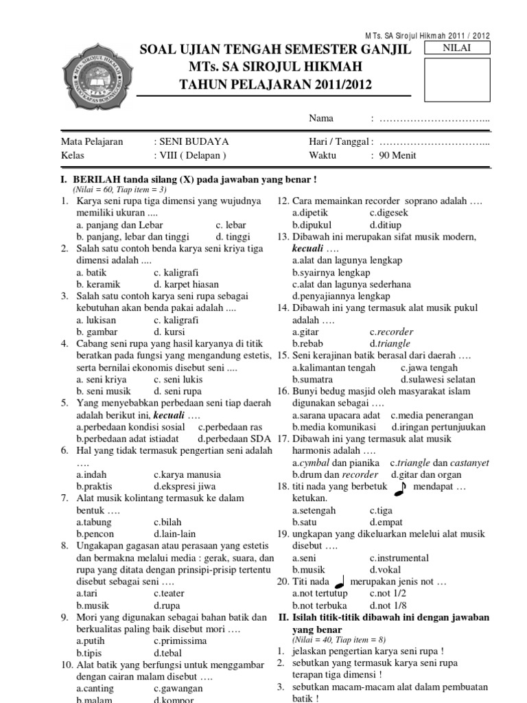 Contoh Soal Seni Budaya Kelas 8 - Contoh Soal Terbaru